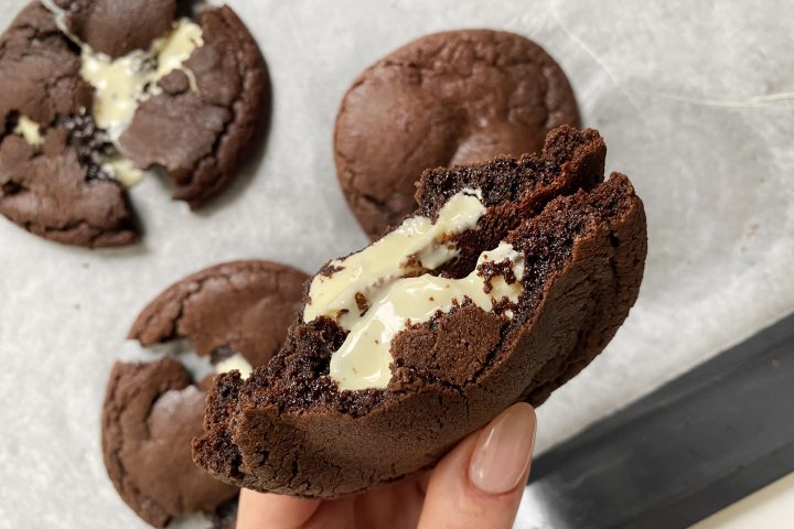 עוגיות אמסטרדם רכות ומפנקות – מתכון לעוגיות שוקולד עם לב פרלין שוקולד לבן שמתגלה בביס. עוגיות פשוטות להכנה ומפתיעות במראה ובטעם.