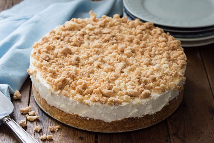 עוגת גבינה פירורים ישראלית קלאסית, עם תחתית פריכה ושכבת פירורים קראנצ'ית. השתמשו בקמח עוגיות לתוצאה מושלמת.