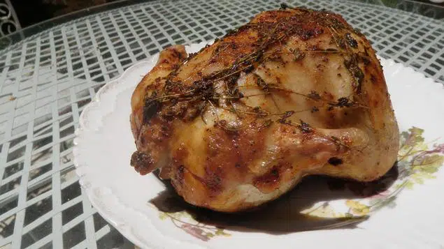 עוף שלם ממולא בדברים טובים, נהדר לארוחת חג ולארוחה המפסקת.