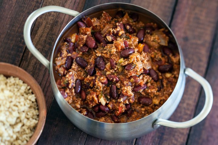 תבשיל צ'ילי של שעועית אדומה ושבבי סויה